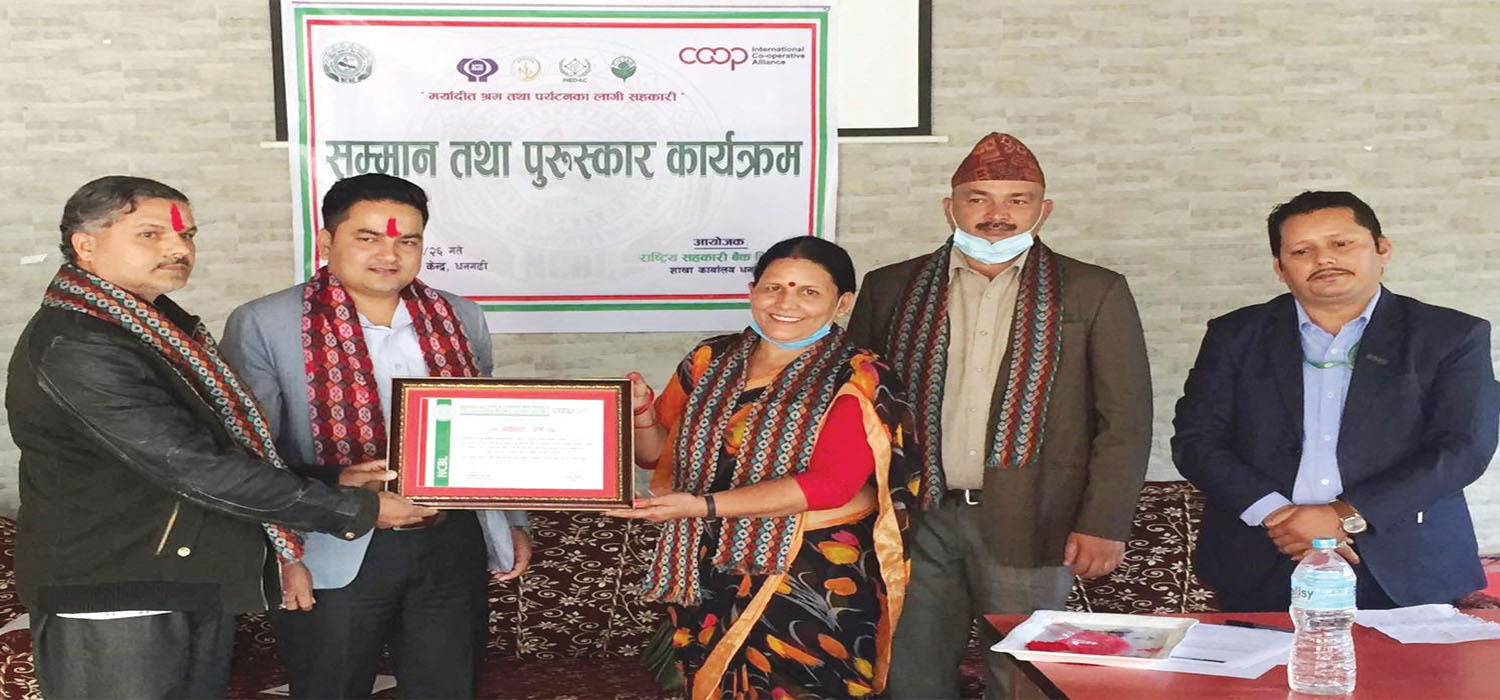 दमौली – राष्ट्रिय सहकारी बैङ्क लिमिटेड दमौली शाखाले तनहुँका दुई सहकारी संस्थालाई व्यवसाय पुरस्कार प्रदान गरेको छ । आर्थिक वर्ष २०७७-०७८ मा बैङ्कमा नियमित कारोबार गर्ने र उत्कृष्ट कारोबार गर्ने एक-एक सहकारी संस्थालाई सोमबार दमौलीमा आयोजित कार्यक्रममा पुरस्कृत गरिएको हो ।
