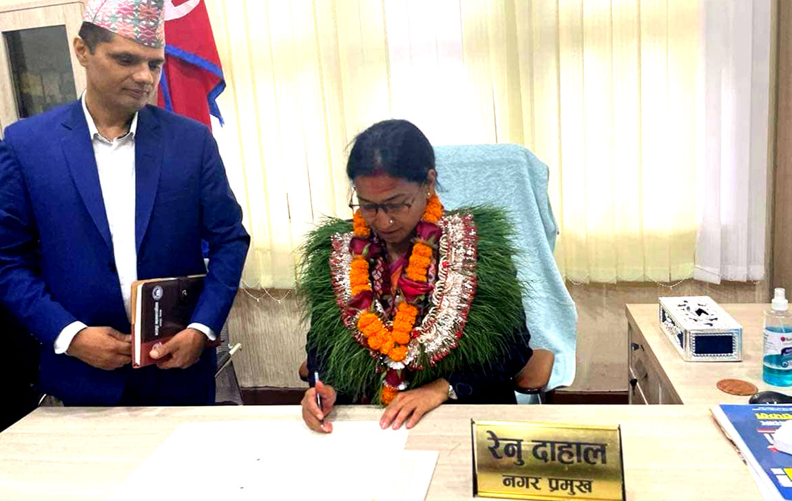 भरतपुरको नवनिर्वाचित मेयर रेणु दाहालले बुधबार कार्यभार सम्हाले