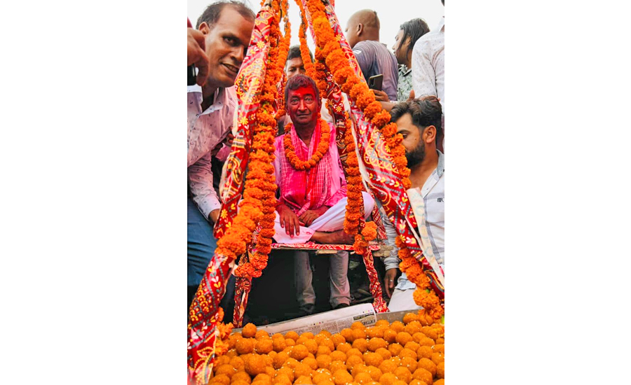 कलैयामा तौल बराबरको लड्डुले नवनिर्वाचित मेयरलाइ गरे स्वागत
