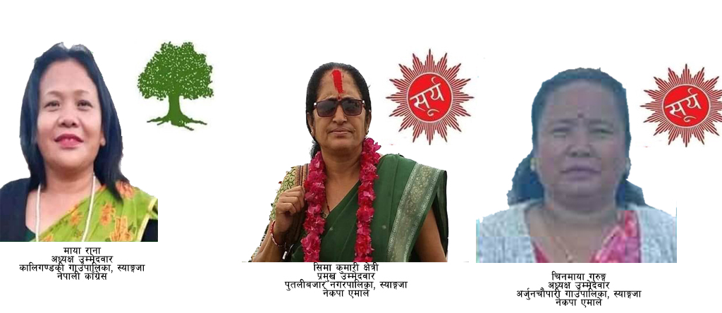 स्यांग्जाको तीन पालिकाको प्रमुखमा उम्मेदवार रहेका तीन महिला नै पराजित