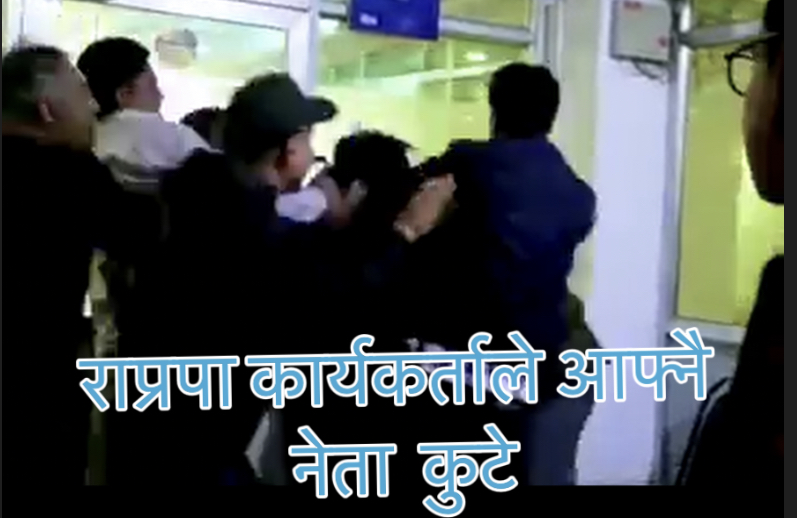 राष्ट्रिय प्रजातन्त्र पार्टी (राप्रपा) का कार्यकर्ताले कुटे आफ्नै पार्टिका नेता