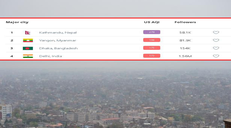 दिल्ली चौथो प्रदुषित शहर बन्दै गर्दा काठमाडौं बन्यो विश्वकै सर्वाधिक प्रदूषित शहर